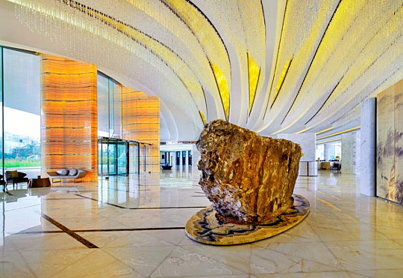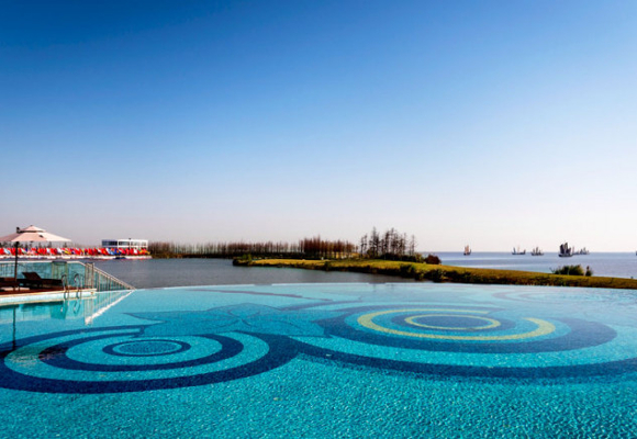 Un edificio construido en forma de herradura, diseñado por el arquitecto Ma Yansong. Un hotel cinco estrellas situado al sudeste del país, a orillas del Lago Tai, entre Hangzhou y Shanghái. La construcción es un óvalo completo, pero solo la mitad emerge sobre la superficie. Dos niveles del hotel son subterráneos. En la parte inferior se encuentra un arco para eventos y la piscina de horizonte infinito, aunque cuenta con otra piscina interior en altura. La parte superior es abierta y accesible. Cuenta con 321 habitaciones en 27 plantas, y pasar una noche allí cuesta como mínimo 229 euros la noche.
