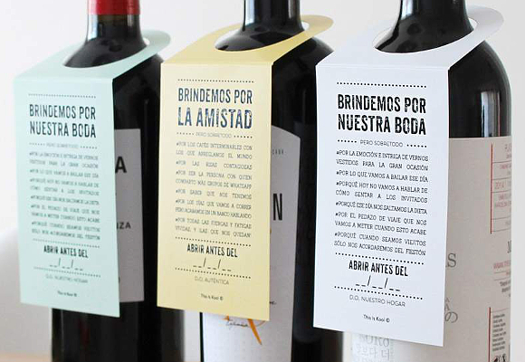 Además de que las propias bodegas lancen sus etiquetas con mensaje, diseñadores y creativos de eventos han inundado el mercado con etiquetas y collarines para botellas de vino en las que el propio consumidor puede escribir el mensaje deseado y utilizarlo como recuerdo de un evento o regalo de empresa dependiendo del caso y la ocasión.