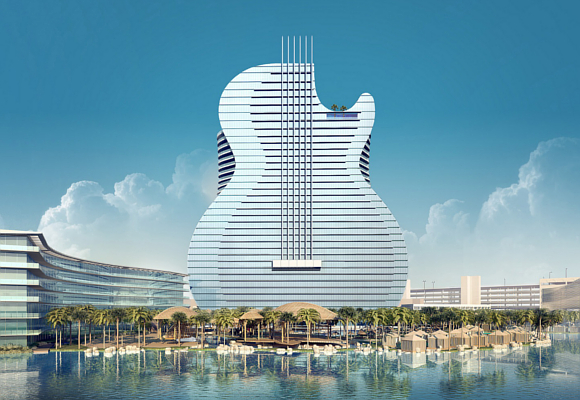 Otras empresas de renombre que se han sumado a la fiesta han sido Rockwell Group, con base en Nueva York; EDSA, empresa paisajística; Wilson Associates, de Dallas; Wimberly Interiors, especialistas en diseño interior; Cleo Design, empresa de diseño de Las Vegas; y Laurence Lee Associates con base en Los Ángeles. Aunque, por supuesto, la reina de las empresas siempre es la constructora, dicho honor recae esta vez en una orgullosa empresa norteamericana: Suffolk. El hecho es, sin embargo, que nuestras pupilas podrán disfrutar de una apoteósica imagen: la de una guitarra de 137 metros de altura donde pasar inolvidables momentos.
