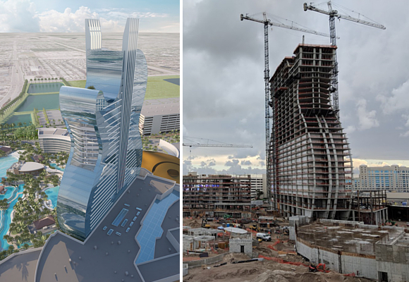 El pasado mes de noviembre se llevó a cabo una ceremonia para marcar el comienzo de la construcción en la que destrozaron varias guitarras, algo tradicional en las aperturas de las salas de Hard Rock, con música y demás. La torre de 36 plantas se está ejecutando con hormigón armado y se cubrirá de un entramado de metal y cristal formando la silueta de una guitarra, según dicen, a escala real.