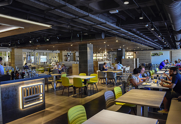 El nuevo espacio, donde trabajan más de 40 empleados, dispone de casi 1.500 metros cuadrados, a través de los cuales el cliente puede escoger, bajo el concepto free flow, entre las ofertas gastronómicas de que dispone, como ensaladas, cocina italiana, tapas, cocina asiática, todo tipo de arroces y fideuà, parrilla, charcutería, alta pastelería, zumos y postres caseros. Con la selección hecha, el cliente accederá al comedor para degustar, también, de las mejores vistas de Valencia, con una panorámica de más de 180º que engloba los iconos más emblemáticos de la ciudad: el Miguelete y el cimborrio de la Catedral, la torre de Correos, el Ayuntamiento o el edificio del Banco de Valencia, entre otros.