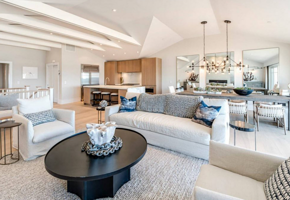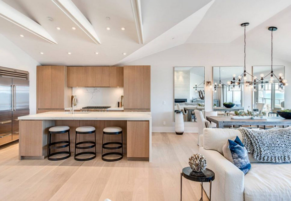Al otro lado, una generosa sala de estar te hará temblar de alegría por sus enormes dimensiones, en las que cabe una espectacular cocina color roble sin tiradores, con una isla donde cualquier chef estaría contentísimo, el comedor principal con mesa de madera envejecida, un par de lámparas de ensueño y, por supuesto, la sala de estar con confortables sofás frente a una chimenea. Dos puertas correderas te llevarán hasta una terraza con vistas al océano… ¿Quién da más?