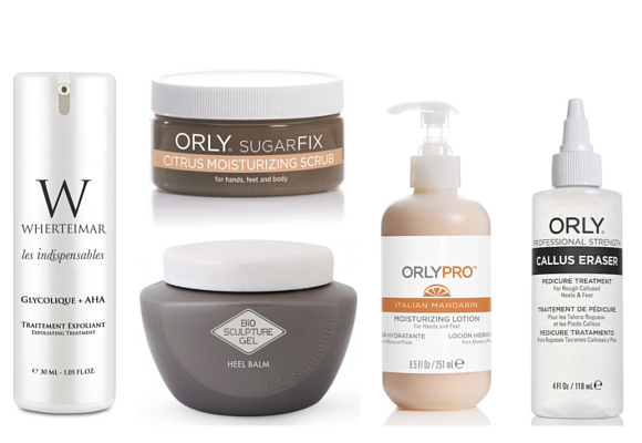 - Orly cuenta con varios de su línea Pro y otras, siendo los más recomendados su tratamiento para callos y rugosidades (Callus Eraser), el exfoliante Citrux Fix o su loción hidratante de mandarina para después.