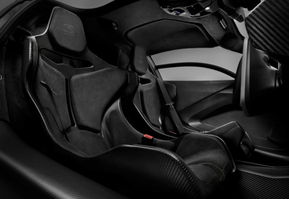 En su interior, toda la espectacularidad de su chasis se convierte en comodidad, con tapicería de Alcantara, con el logo Senna S bordado en cada reposacabezas, volante de tres radios y cuadro de mandos con pantalla táctil tipo Tablet. El frontal es muy reconocible, en la línea de otros diseños de la marca, una aerodinámica, con aletas móviles ocultas en las tomas de aire, que hacen que el coche no se despegue del suelo y unas llantas de fibra de carbono de siete brazos ultraligeros, completan un trabajo casi de orfebrería.