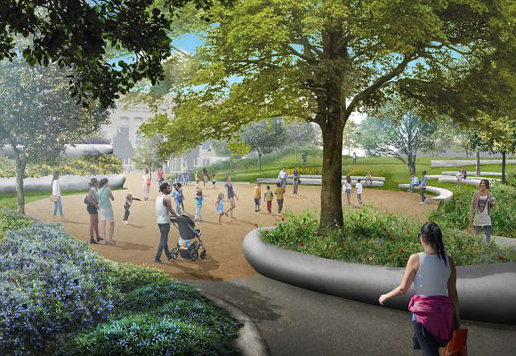 El diseño cambió antes de salir de Chicago, transformando su ostentosa cúpula en un parque flotante, donde los visitantes podrán pasear en zonas verdes y disfrutar de las vistas del Parque de Exposiciones de Los Ángeles. Este año se ha puesto la primera piedra y pudimos ver cómo el alcalde la ciudad, Eric Garcetti, la junta rectora del museo, los cofundadores George Lucas y Mellody Hobson y algunos políticos más, alzaban la famosa pala que daba paso a la construcción del edificio el pasado 14 de marzo.