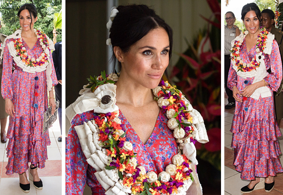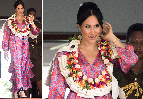 Meghan Markle escoge un colorido vestido de la firma Figue de Nueva York para sus primeros actos oficiales en Fiji.