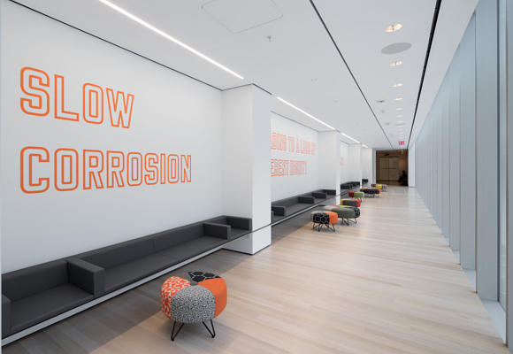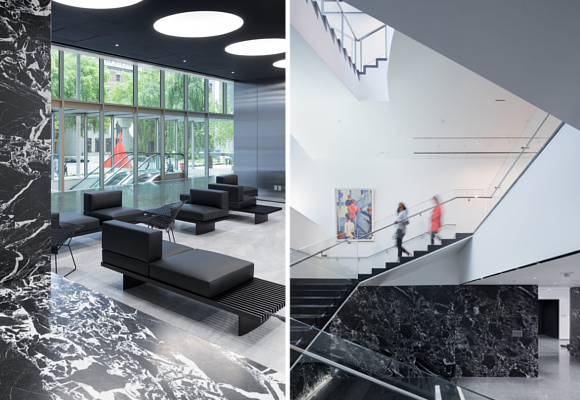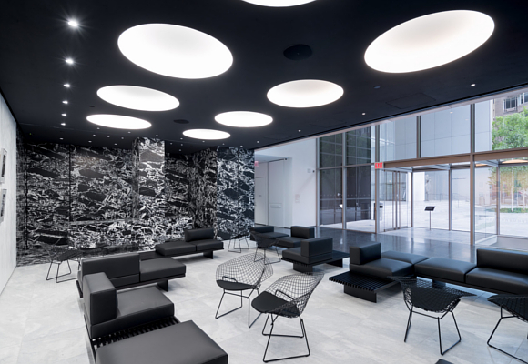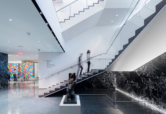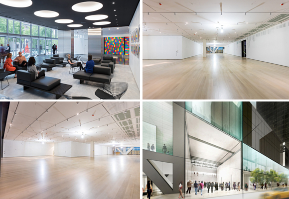 La inestimable colaboración del internacional estudio de arquitectura Gensler no pasa desapercibida, dado que se ha puesto de manifiesto por los diseñadores principales con especial énfasis. En total, se agregan más de 3.700 metros cuadrados al museo, proporcionando al complejo de un estudio donde realizar programas en vivo y actuaciones, capaces de involucrar al espectador con la forma actual de realizar arte. Se ha mejorado la conexión en planta baja, ampliándola y abriendo nuevas galerías gratuitas al público, convirtiendo a los paseantes de Manhattan en parte del museo y viceversa.