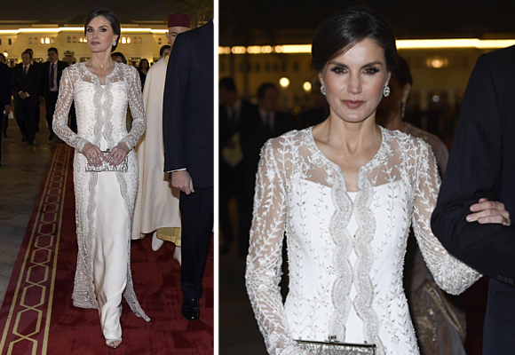 Nadie ha hecho más por Felipe Varela que la reina Letizia. Un agradecimiento eterno que el modisto refleja de vez en cuando con creaciones magníficas, como la que anoche lució en Marruecos durante la cena de gala con Mohamed VI y toda su familia. Un diseño luminoso en tonos blancos, elegante y perfecto para el escenario donde se celebraba un acontecimiento de Estado muy especial.