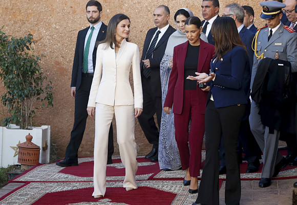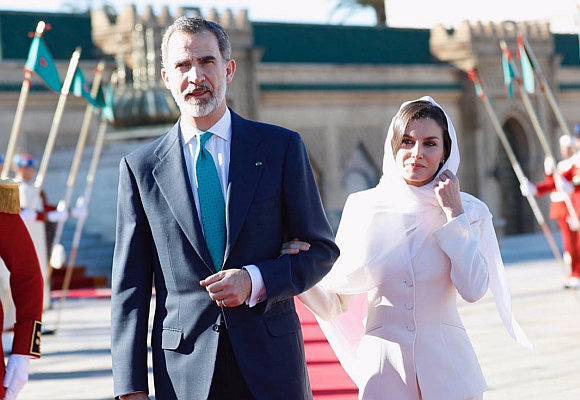 Antes de visitar la Escuela de Segunda Oportunidad de Salé, acompañada de Lala Meriem, hermana del Rey Mohamed VI, la reina Letizia acompañaba con el mismo atuendo (y un ligero velo en señal de respeto) al rey Felipe VI durante la visita al Mausoleo de Rabat donde han rendido homenaje a los Reyes Mohamed V y Hasán II.