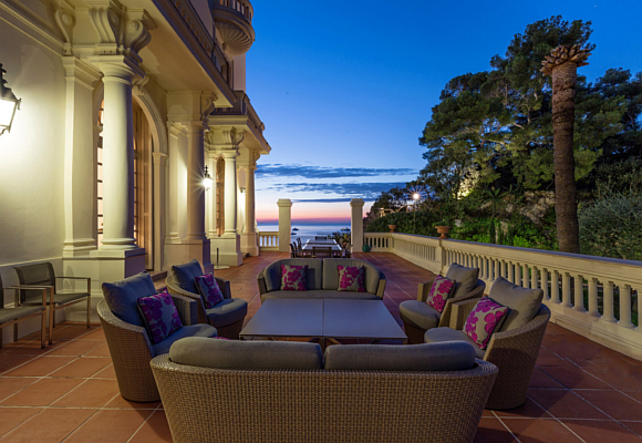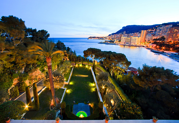 La villa se alza orgullosa en lo alto de un promontorio con vistas a la playa de Montecarlo, en Roquebrune–Cap–Martin, un estratégico lugar que fue transformado durante la Segunda Guerra Mundial en un puesto de observación del ejército alemán. Sus jardines fueron convertidos en trincheras con campos de minas rodeando la edificación… pero volvamos a la actualidad, en la que jardines bien cuidados forman parte del parque del inmueble al que se accede por un camino privado.