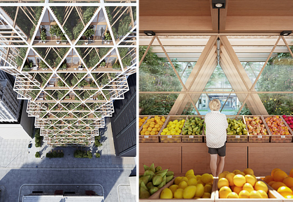 Los jardines podrán ser comunes para los propietarios o privados para cada unidad residencial. Sea como fuere, el cultivo se podrá llevar a la planta baja donde los “granjeros” tendrán instalado un mercado en el que vender sus productos. “Si queremos animar a las personas a preocuparse por el medio ambiente, tenemos que devolver el medio ambiente a nuestras ciudades”, defienden los arquitectos, que añaden que se deben ejecutar edificios con materiales hápticos, que deseemos tocar y mirar. Edificios vivos, donde escuchar pájaros y abejas dentro de un ecosistema, edificios con olor a verduras y a hierbas.