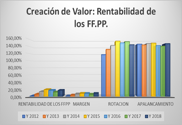 La caída de la rotación ha sido mitigada por el crecimiento del apalancamiento y el margen, con lo que la rentabilidad de los fondos propios aumenta consistentemente hasta niveles del 16,96 %.