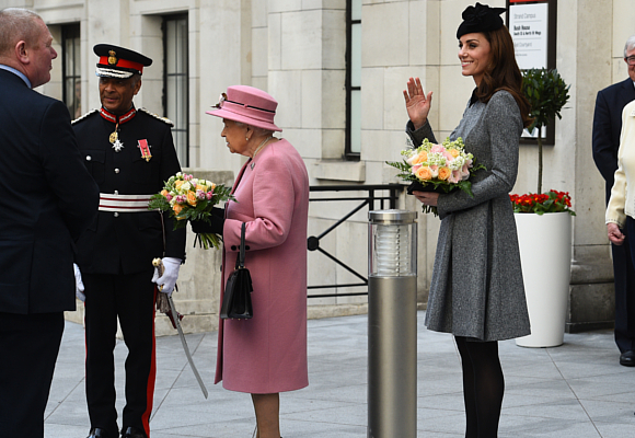 La duquesa de Cambridge acompaña en solitario por primera vez a la reina Isabel II en un acto oficial.
