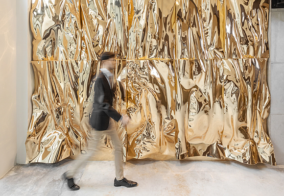 La primera exposición temporal, que se inauguró el 15 de marzo, está dedicada a Víctor Goikoetxea y recoge algunos de sus trabajos figurativos y abstractos más destacados. El artista ha creado además una obra de arte ad hoc para el lobby de la nueva sede. Se trata de una esculto-pintura de gran formato, de 20 metros cuadrados, realizada en policarbonato espejo y que ha sido bautizada como “Basque Luxury Golden Wall”.