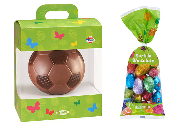 En Mercadona podrás encontrar por ejemplo una gran variedad de chocolates de Pascua sin gluten. En el supermercado encontrarás divertidas figuras en forma de conejitos y balones, presentados individualmente y que resultan ideales para tener un detalle con los más pequeños. También encontrarás huevos con disquitos de colores y chocolatinas, ideales para dar un toque crujiente a las meriendas en estas fiestas de Pascua.