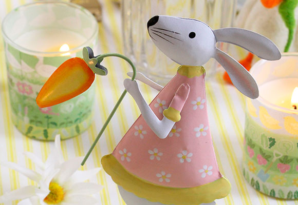 Al igual que en Navidad colocamos figuras de Papá Noel por diferentes partes de la casa, en Semana Santa podemos hacer lo mismo con el conejo de Pascua. Las figuritas de Gisela Graham London son las más bonitas que hemos visto. Su diseño es distinto al típico conejo que vemos por todos lados, es más simple y original y, además, combina a la perfección con la primavera, ya que utilizan colores claros y tonos pastel.