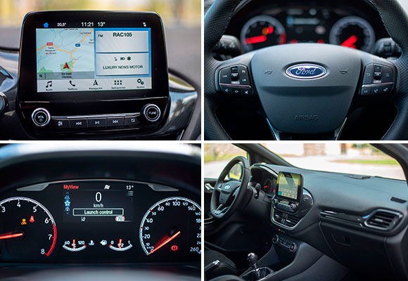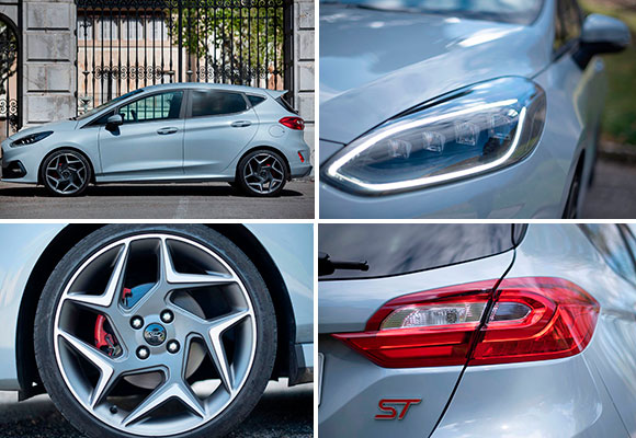 Estéticamente cuenta con los detalles específicos que todo apasionado del motor identificará en un abrir y cerrar de ojos. Es deportivo sí, pero no está al nivel de versiones RS de su hermano mayor. El Fiesta más cañero prefiere guiños como la parrilla en forma de nido de abeja con el logo ST, un paragolpes actualizado y los nuevos grupos ópticos más afilados y con tecnología LED para las luces diurnas de serie. Los Full LED son opcionales.