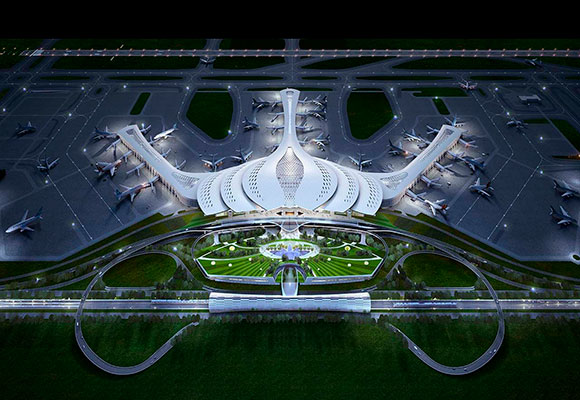En Vietnam quieren entrar por la puerta grande en esto de los aeropuertos del futuro. Muy cerca de la ciudad de Ho Chi Minh, a 40 kilómetros, el estudio Heerim Architects ha desarrollado el plan para el aeropuerto internacional de Long Thanh. La cifra de costo sí que da vértigo (y no volar en avión) dado que estiman será de 4.500 millones de euros, eso sí, realizada en tres fases, se prevé que en la primera se logren un transbordo anual de 25 millones de personas. El edificio tendrá forma de flor de loto, con sus pétalos como caminos hasta las terminales, y un interior plagado de zonas verdes. Un verdadero lujo.