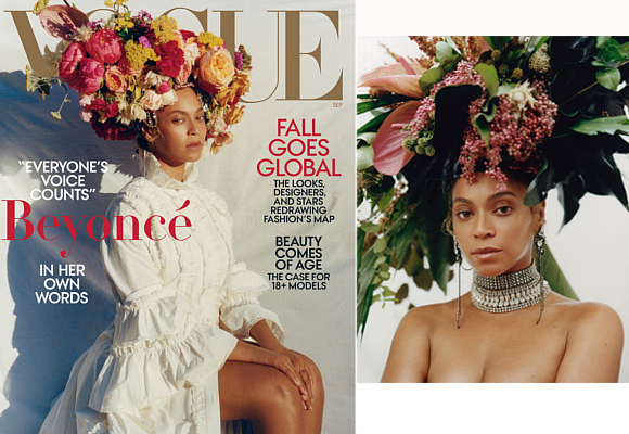 Las publicaciones de Vogue América y Vogue Reino Unido escogieron a dos reinas del pop para protagonizar la edición de septiembre de 2018, en las cuales Frida Kahlo y las coronas de flores eran las protagonistas.