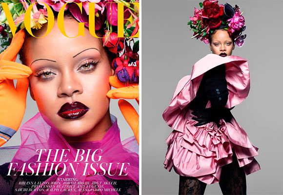Frida Kahlo siempre ha sido una fuente de inspiración en el mundo de la moda, y como tal, se ha mostrado a lo largo del tiempo en las portadas de las principales publicaciones de moda. Esto mismo piensa el editor de British Vogue, que se empecinó en que su primera portada tenía que ser con Rihanna y que debía llevar flores en la cabeza. Para ello se trajo, nada menos que al japonés Azuma Makoto, una leyenda entre los diseñadores del mundo.
