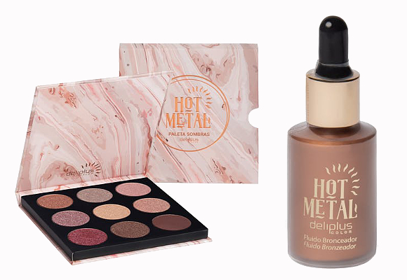 Si te dejas seducir por esta tendencia, la Perfumería de Mercadona dispone de una nueva colección de edición limitada que reúne una buena paleta de productos con tonos metálicos para resaltar este verano. La nueva colección Hot Metal aporta un tono bronceado en el rostro y un efecto metalizado a ojos, uñas y labios.