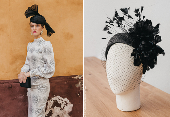 Además del vestido, confeccionado en un tejido de twill, la diadema tocado que lució Letizia en Windsor también es creación de Cherubina, con tiendas físicas en Sevilla y Madrid. Aún a la venta por 240 € se trata de una pieza “con adorno lateral de una peonía de plumas rematada por otras de oca que le dan altura y velito de rejilla que se adapta perfectamente a la fisionomía de la cara” explica la web. Está realizada completamente a mano en un taller de la capital hispalense.