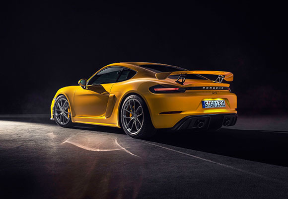Entre las características más relevantes del nuevo 718 Cayman GT4 está la importante mejora del concepto aerodinámico. Con él, se logra un 50 % más de carga aerodinámica sin que ello afecte al drag o índice de resistencia al viento, lo que demuestra su extraordinaria eficiencia. La aerodinámica de ambos modelos se beneficia de forma considerable del nuevo diseño del arco para el silenciador trasero de una sola cámara, que crea espacio para un difusor funcional responsable de un 30 % de la carga aerodinámica en el eje posterior del 718 Cayman GT4. El alerón trasero fijo también tiene gran eficiencia, pues produce alrededor de un 20 % más de carga aerodinámica en comparación con su antecesor.