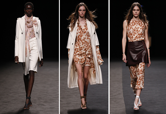 Roberto Torretta ha presentado una colección para para la próxima primavera/verano repleta de colores tranquilos y los materiales de lujo. Diseños elegantes en vestidos envolventes de mangas infinitas y rebuscados pliegues, en seda estampada gran liberty y Monet que nos trasladan a finales de los años 70 y composiciones para la noche en moaré y pedrería en seda negra.