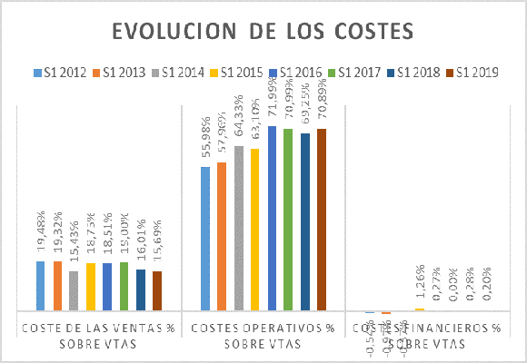 Este mal dato, se basa, sobre todo, en la caída de ventas de Relojería y Joyería (-4,91 %), que no ha sido compensado el crecimiento del 18,90 % en Sistemas electrónicos. La magnifica evolución de los costes sobre ventas, se debe, fundamentalmente, a la caida de las materias primas (-22,83 %) y una mejor política de exigencias que ha compensado la caída de otros ingresos de explotación, lo que supone que estos costos, en relación con las ventas, hayan disminuido en -32 p.b., para situarse en el 15,69 % del total ingresado. Esto provoca que los CHF 3.438 millones del beneficio bruto, sean un -4,05 % menores al del mismo periodo del año anterior, con la consiguiente subida del margen bruto, para situarse en el 84,31 %.
