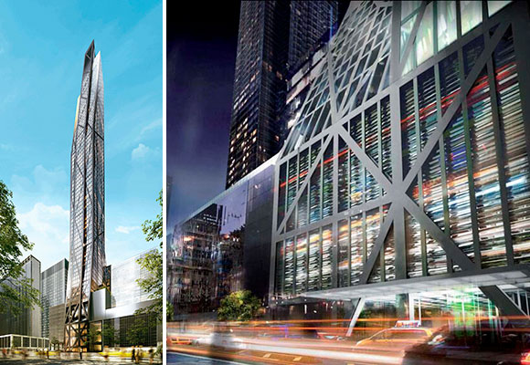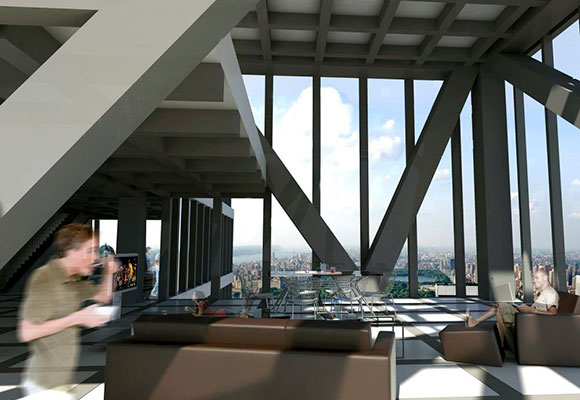 Una súper-construcción como esta, por supuesto, no podía caer solamente en las manos de un estudio de arquitectura, para su diseño y ejecución, Nouvel contó con los estudios locales de SLCE Architects, quienes colaboraron en el One57, y Adamson Associates, proyectistas del One Manhattan Square. Como se puede ver, entre expertos anda el asunto. Ellos nos cuentan que este coloso de hormigón armado aprovecha al máximo sus fachadas para dar las mejores vistas posibles, que la altura de piso a techo es de 3,6 metros (enorme) y que en la fachada se refleja la estructura que absorbe el empuje del viento.