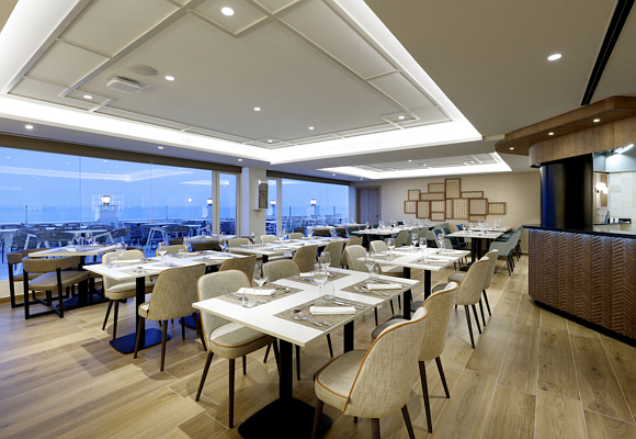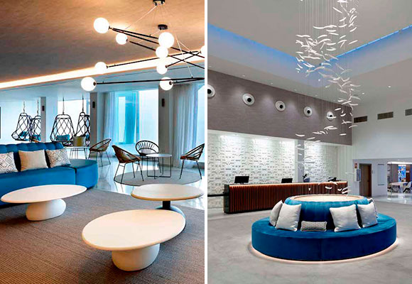 Al llegar en este hotel encontrarás un recibimiento que te hará sentir como si estuvieras en un crucero o en un hotel del Caribe. Nada más dejar tus maletas al personal te agasajará con una copa de zumo de frutas tropicales mientras gestionas el check in. Lámparas gigantes, paredes de vidrio con vistas al mar, que asemeja la sensación de estar navegando en un crucero de lujo, una decoración muy personal, con toques elegantes y modernos, es la nueva propuesta de Palladium Hotel Group.