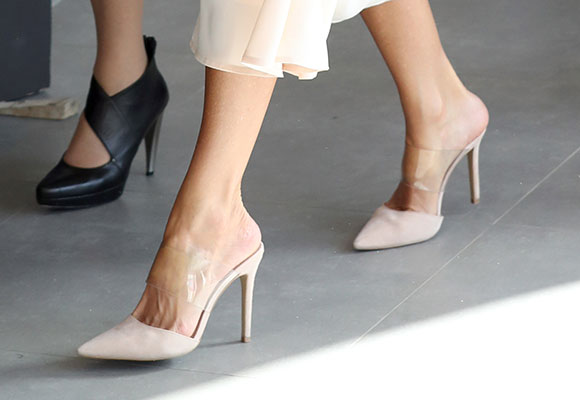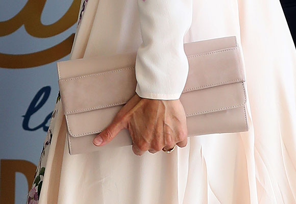 Para el look de hoy, doña Letizia se ha decantado por unos mules de Steve Madden del mismo color del vestido. Unos zapatos que también tiene en negro, y que poseen una tira ancha de vinilo en el empeine, un truco que hace que el pie se sujete mejor al zapato y sea más sencillo de llevar. En el caso del bolso, ha vuelto a repetir la cartera nude de Magrit.