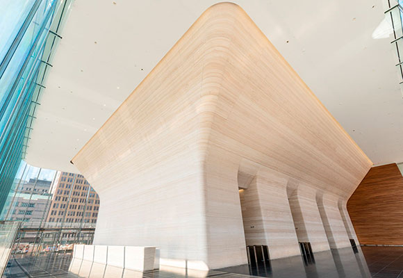 El edificio se sustenta por encima de las vías de la Estación Pennsylvania, por ello la singular estructura del rascacielos, que se ubica en su centro para evitar la repartición de cargas en una superficie más amplia. El núcleo es tan grande y visible que había que dotarlo de belleza, por lo que se emplearon 400 metros cuadrados de mármol travertino, para cubrir la parte estructural que da al fabuloso vestíbulo del complejo de, nada más y nada menos, que tres plantas de altura.