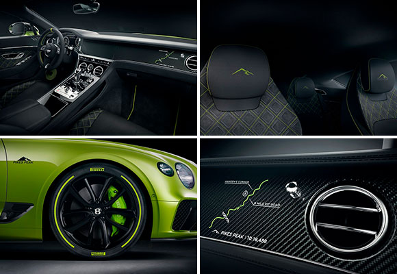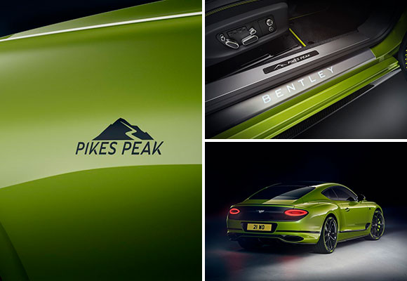 Bentley lanza una muy exclusiva edición limitada de 15 unidades del Continental GT, para celebrar el récord conseguido al ascender al monte Pikes Peak en tan solo 10 minutos y 18 segundos. Este exclusivo vehículo cuenta con un kit de carrocería de fibra de carbono, luce una pintura Radium by Mulliner y posee una parrilla opcional 100, que honra el logro conseguido dentro del año de su centenario.