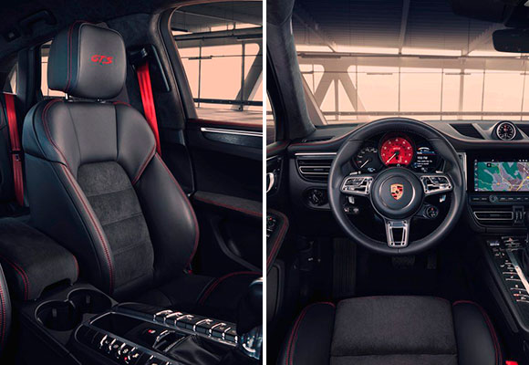 En el interior del Macan GTS, podemos encontrar materiales de gran calidad como el Alcántara®. Este se encuentra en la parte central de los asientos, el reposabrazos de la consola central y los paneles de puerta. En diferentes zonas del habitáculo también podemos encontrar aluminio, que transmite una sensación de elegancia y deportividad. El volante deportivo multifunción forrado en suave cuero y con levas de cambio, es un elemento exclusivo del GTS, que se suma a los de los asientos deportivos con ocho tipos de ajustes, y pronunciados refuerzos laterales para una sujeción óptima en curvas.