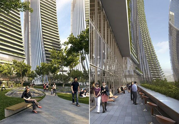 La proeza arquitectónica, cómo no, ha surgido de la mente de uno de los más afamados arquitectos del mundo: Moshe Safdie, creador del Marina Bay Sand, quien se puso manos a la obra tras recibir el encargo, ideando los ocho rascacielos que componen la idílica construcción. De las ocho, las dos primeras torres alcanzan los 350 metros de altura, convirtiéndose en las más altas de la ciudad. Las otras seis, situadas detrás de las anteriores, alcanzan los 250 metros de altura, situando la parcela en una de las más prolijas en edificios de más de 200 metros de altitud.