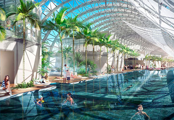 Se podría decir que The Crystal es el noveno rascacielos, aunque en realidad se trata de un puente aéreo de enormes dimensiones. Se trata de una estructura de forma tubular apoyada en cuatro rascacielos de 300 metros de longitud, 32,5 metros de anchura y 26,5 metros de altura. Es decir, el noveno rascacielos alcanza los 276,5 metros sobre la cota cero. Es, sin duda, la joya del conjunto arquitectónico y una proeza de la ingeniería moderna. Nos podemos imaginar lo que hay en ella… un espectacular mirador, exuberantes jardines, restaurantes y la guinda: ¡Una mega piscina infinita!