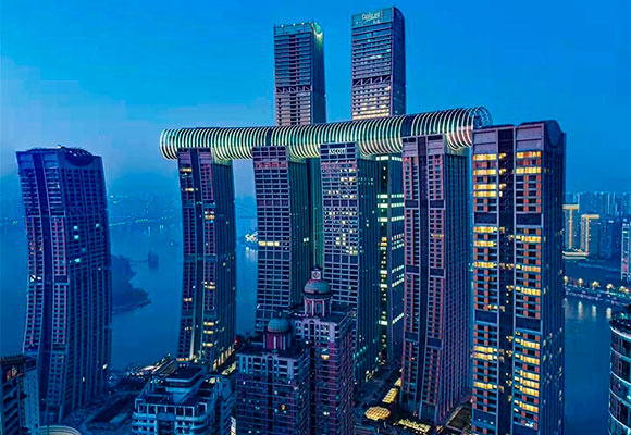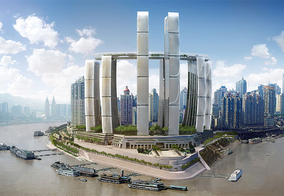 Raffles City Chongqing es un proyecto urbano de primer nivel, construido en un lugar icónico de la ciudad de Chongqing: el cruce entre los ríos Yangtze y Jialing, en el distrito financiero de Jiangbei. La ubicación ha jugado un papel primordial en el diseño, dado que ha permitido que el arquitecto haya ideado la más increíble de las insignias. El edificio imita la forma de un velero tradicional chino, que audaz despliega sus telas sobre una cuña terrenal, eso sí, con forma de rascacielos.