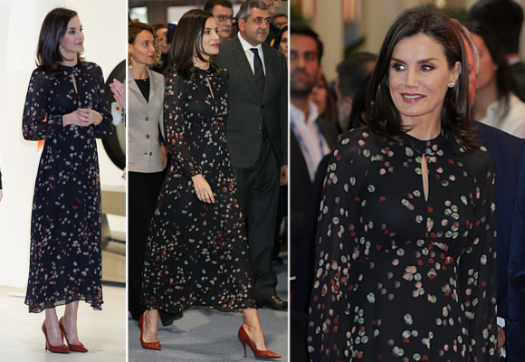 La reina Letizia era la encargada esta mañana de inaugurar una nueva edición de la Feria Internacional de Turismo. La exitosa FITUR, que en este ejercicio conmemora su cuarenta edición, y que la Reina ha podido recorrer brevemente para descubrir algunas de las novedades más relevantes. Para su breve paseo por los pabellones, la reina Letizia ha escogido un atuendo que ya pudimos ver hace unos meses en la visita de Estado de los Reyes a Corea del Sur, país invitado en la edición de este año. Se trata de un vestido con estampado de confetis de la firma española Massimo Dutti.