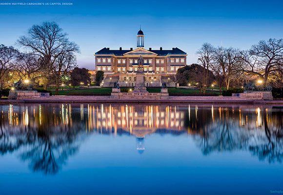 El cuarto diseño que se eligió para la serie de infografías corrió a cargo de James Diamond, un irlandés que ejerció su título de arquitectura en tierra norteamericana. Diamond trajo el diseño de las casas señoriales de Dublín a su versión del Capitolio.