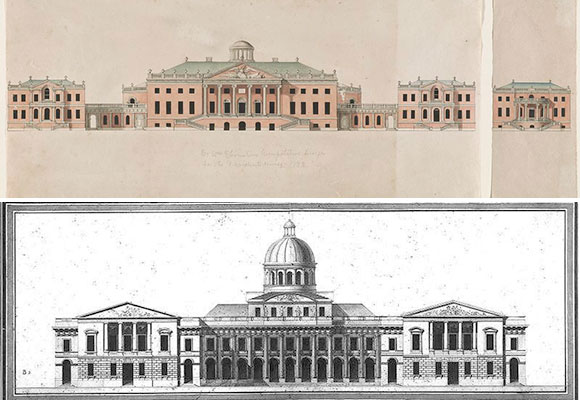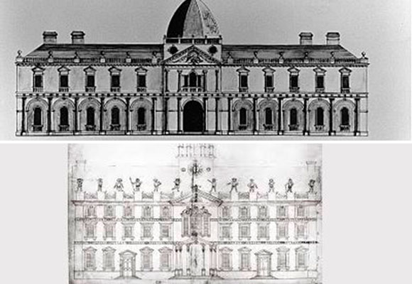 Sobre la puerta arqueada de la entrada se puede distinguir una exquisita ventana palladiana (ventana con vano de medio punto flanqueado por otros dos rectangulares de menor tamaño), con dos alas simétricas con ventanas en planta baja culminadas en arcos. El bueno de James intentó que el diseño se aplicara a la Casa Blanca, pero no logró ninguno de sus dos objetivos.