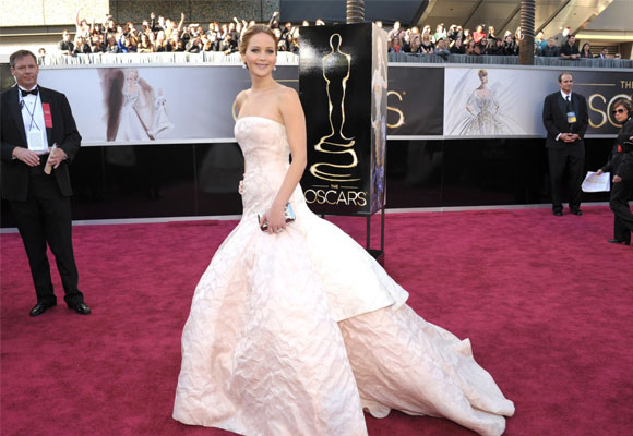 Un año antes, Jennifer Lawrence daba el gran salto tras llevarse el Oscar a Mejor Actriz por su papel en la película El lado bueno de las cosas. Para esa noche tan especial, la actriz apostó por Dior, una de las grandes firmas que nunca falla en la alfombra roja. El vestido pertenecía a la colección Dior Haute Couture y era un delicado modelo de seda de color rosa palo con escote bustier. Ajustado desde el pecho hasta casi la rodilla, luego dejaba paso a una voluminosa falda que acaparaba toda la atención.