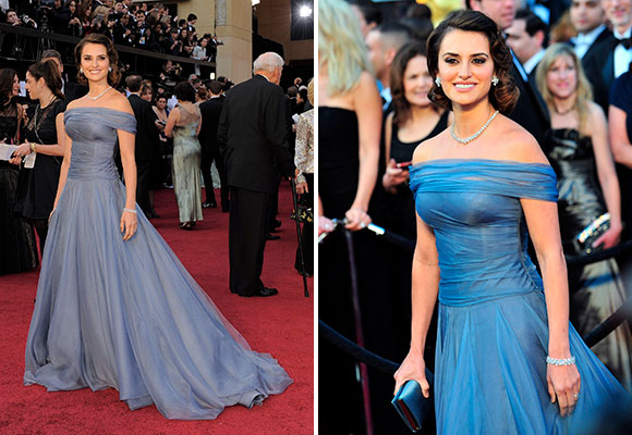 Penélope Cruz, la actriz española más internacional, además de por sus papeles, también ha destacado en Hollywood por sus acertados estilismos en las alfombras rojas. Uno de sus looks más aplaudidos es el que lució en el año 2009, cuando recogió su primer Oscar como Mejor Actriz de Reparto por la película Vicky Cristina Barcelona. Para esa ocasión tan especial, Penélope escogió un diseño vintage de Balmain, de los años 60, del que la española se enamoró perdidamente. El vestido era de escote palabra de honor, con un corpiño ajustado y una larga falda con mucho volumen. Lo más especial del traje eran las pequeñas incrustaciones de pedrería que lo recorrían desde el escote hasta la cola.