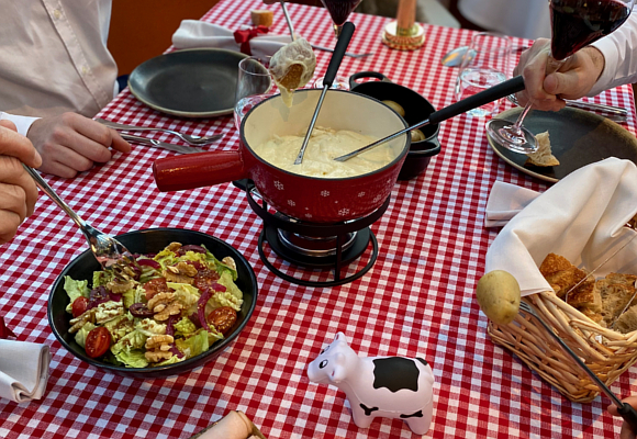 Y es que hasta principios de marzo se puede subir, en un ascensor transformado en telecabina, hasta la séptima y última planta de este hotel 5* Gran Lujo donde aparece ante nuestros ojos un restaurante de montaña. Lo llaman El Chalet, una pérgola de madera readaptada bajo la cual es posible comer o cenar en un Winter Garden muy alpino diseñado para los amantes del queso. El menú tradicional de montañas suizas acompañado de buenos vinos (obviamente) suizos con la chasselas de Lavaux a la cabeza y donde tú elijas: ¿Fondue o raclette? O una carta en la que destacan novedades diseñadas por el chef Daniel Padró.