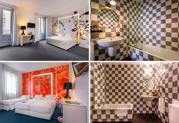 De la mano del mismo diseñador descubrimos en Madrid otro nombre propio: Mario, el Hotel Room Mate Mario. Este hotel se encuentra muy cerca del Teatro Real y del Templo Debod, y entre el Parque del Retiro y la Casa de Campo, las principales zonas verdes madrileñas. Una de las marcas de este grupo hotelero son sus desayunos, que están disponibles hasta las 12:00. El edificio data de 1890, tiene cinco plantas de altura y se esconde en la calle Campomanes.