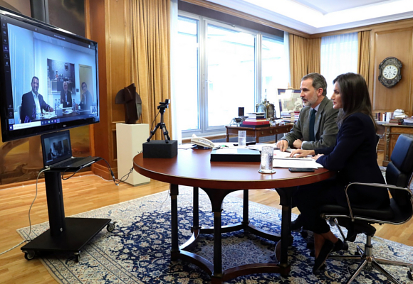 El rey Felipe VI y la reina Letizia se reúnen con empresarios y agentes sociales por videoconferencia para analizar la crisis del coronavirus.