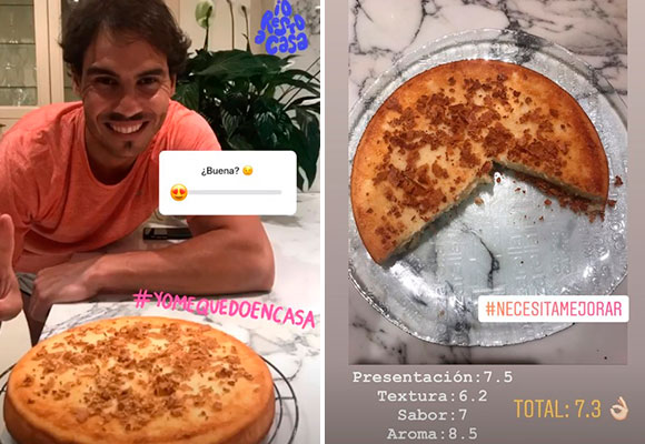 Rafa se ha plantado frente a los fogones y se ha animado a preparar un delicioso bizcocho. Aunque confiesa que está desbordado en casa y que no para de hacer cosas, el tenista nos adelantaba en un vídeo el proceso inicial de su postre y prometía enseñar el resultado cuando estuviera terminado. Algo que cumplía horas después contando con la valoración de su hermana María Isabel, que está pasando con él la cuarentena. Un 7.3 al bizcocho de Rafa, decía divertida.