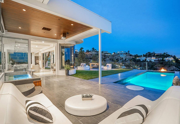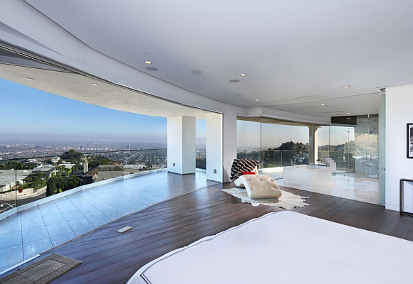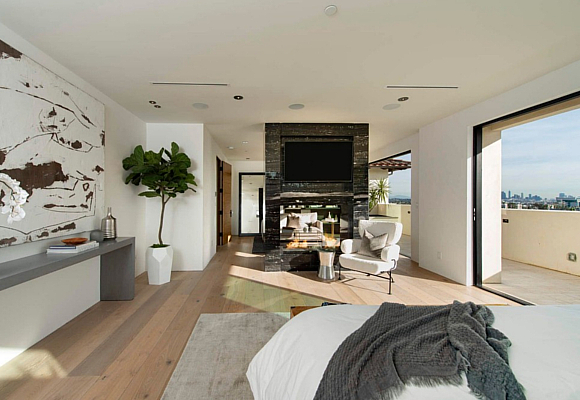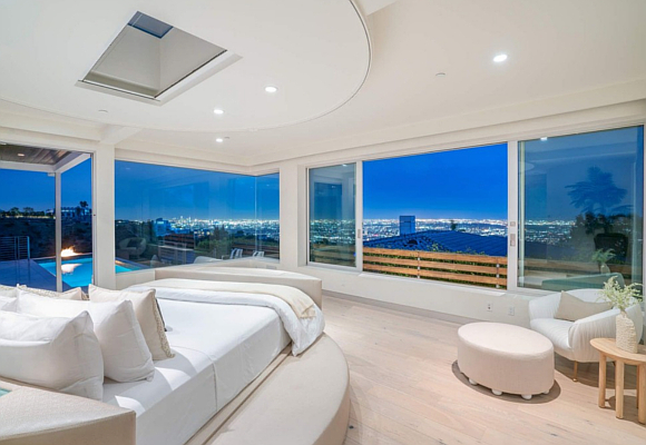Con seis habitaciones y siete baños en sus 600 metros cuadrados dispone de estancias amplias y llenas de encanto. Cada habitación tiene su propio vestidor y la principal además posee su propia sala de estar con chimenea y terraza privada. Desde su piscina infinita se puede ver Hollywood y el centro de Los Ángeles.