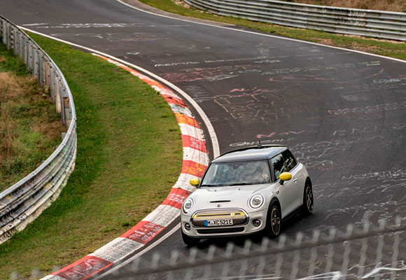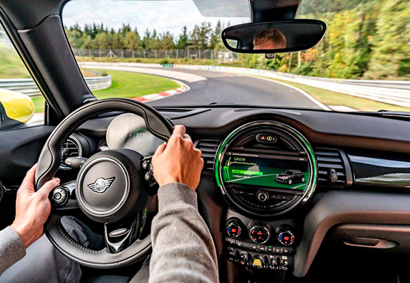 El circuito pone a prueba las excepcionales cualidades de cualquier coche que allí se pilota. No obstante, lo que persigue el primer vehículo totalmente eléctrico del fabricante británico de automóviles de gama alta no es batir récords de velocidad en el circuito, sino de otro tipo muy diferente. Si se quiere recorrer el Infierno Verde en modo Green sin pisar el pedal del freno, es necesario que el nuevo MINI Cooper SE ofrezca la máxima eficiencia y un alto grado de sensibilidad en el pie derecho.