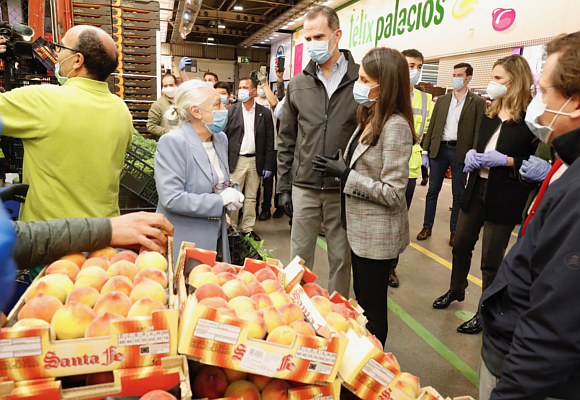 Los Reyes han madrugado mucho esta mañana para conocer de primera mano la situación de Mercamadrid. Uno de los principales ejes logísticos que han mantenido el tipo durante la crisis sanitaria desatada por el coronavirus desde primeros de marzo en España. Una visita que se fraguó precisamente en aquellos duros días de inicio de la pandemia, cuando el rey Felipe VI mantuvo una videoconferencia el 25 de marzo con los responsables del principal mercado de alimentos frescos de España.